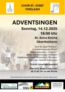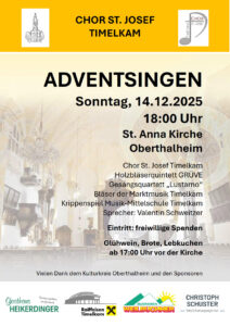 Chor St. Josef Timelkam Holzbläserquintett GRÜVE Gesangsquartett „Lustarno“ Bläser der Marktmusik Timelkam Krippenspiel Musik-Mittelschule Timelkam Sprecher: Valentin Schweitzer
